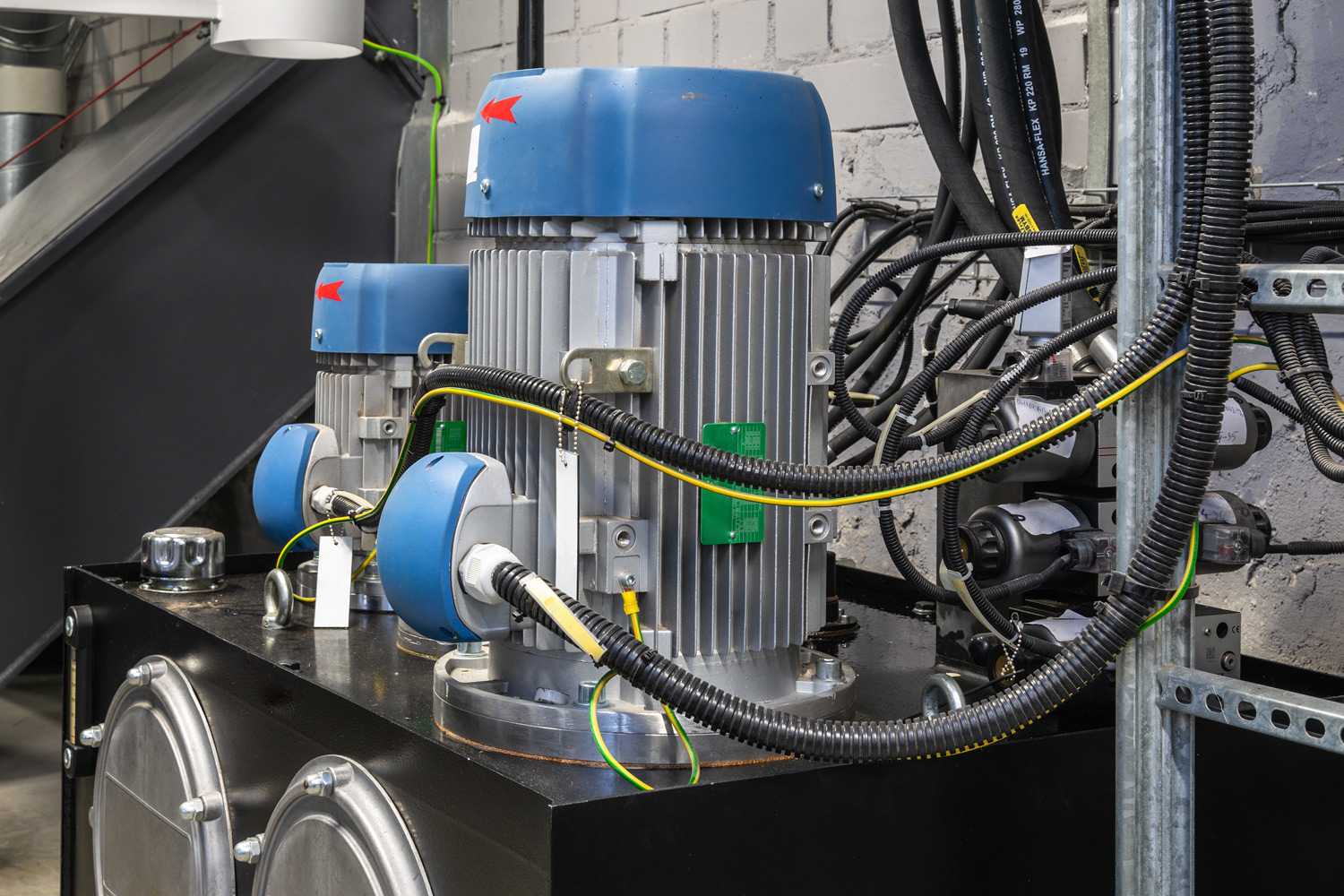 One of the most important components of hydraulic systems is the pump, which is powered by an electric motor. The oil, or the hydraulic fluid, runs through a circuit in hydraulic systems. It is conveyed by a hydraulic pump via hydraulic hoses to a hydraulic cylinder (outflow) and from there it is pumped back to the tank or liquid container via a return line.